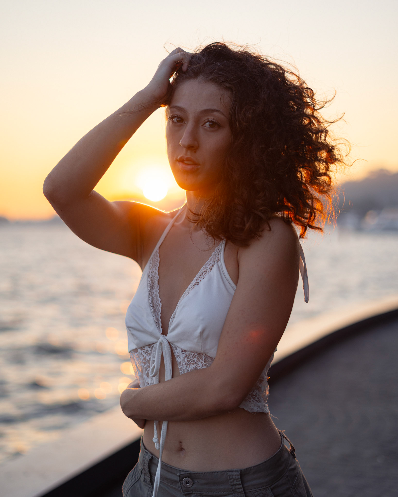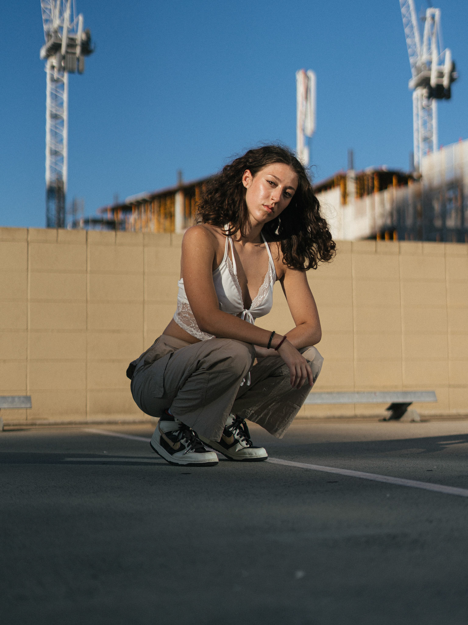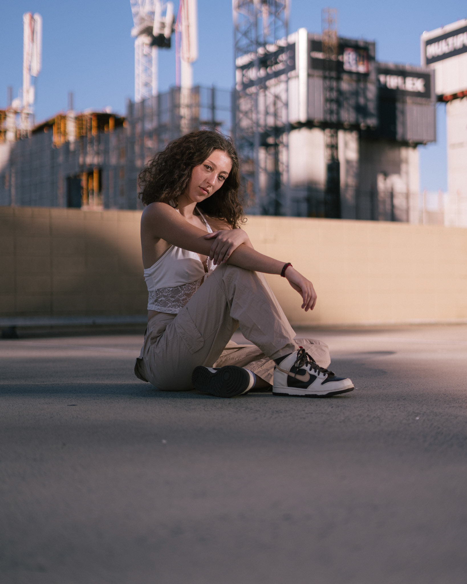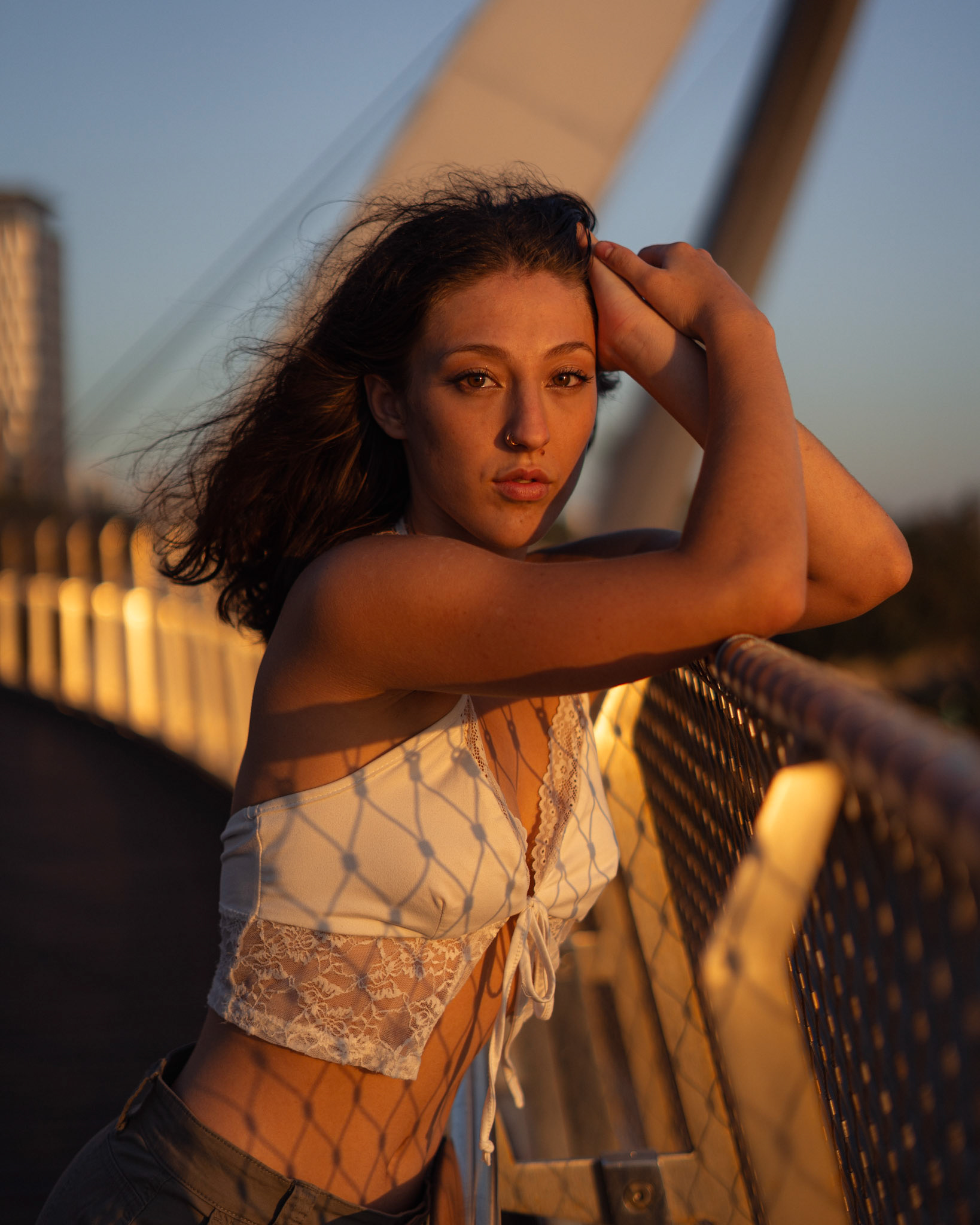 "Navigating the urban labyrinth, amidst the towering skyscrapers, she's drawn to the golden hour's gentle glow like a moth to flame..."