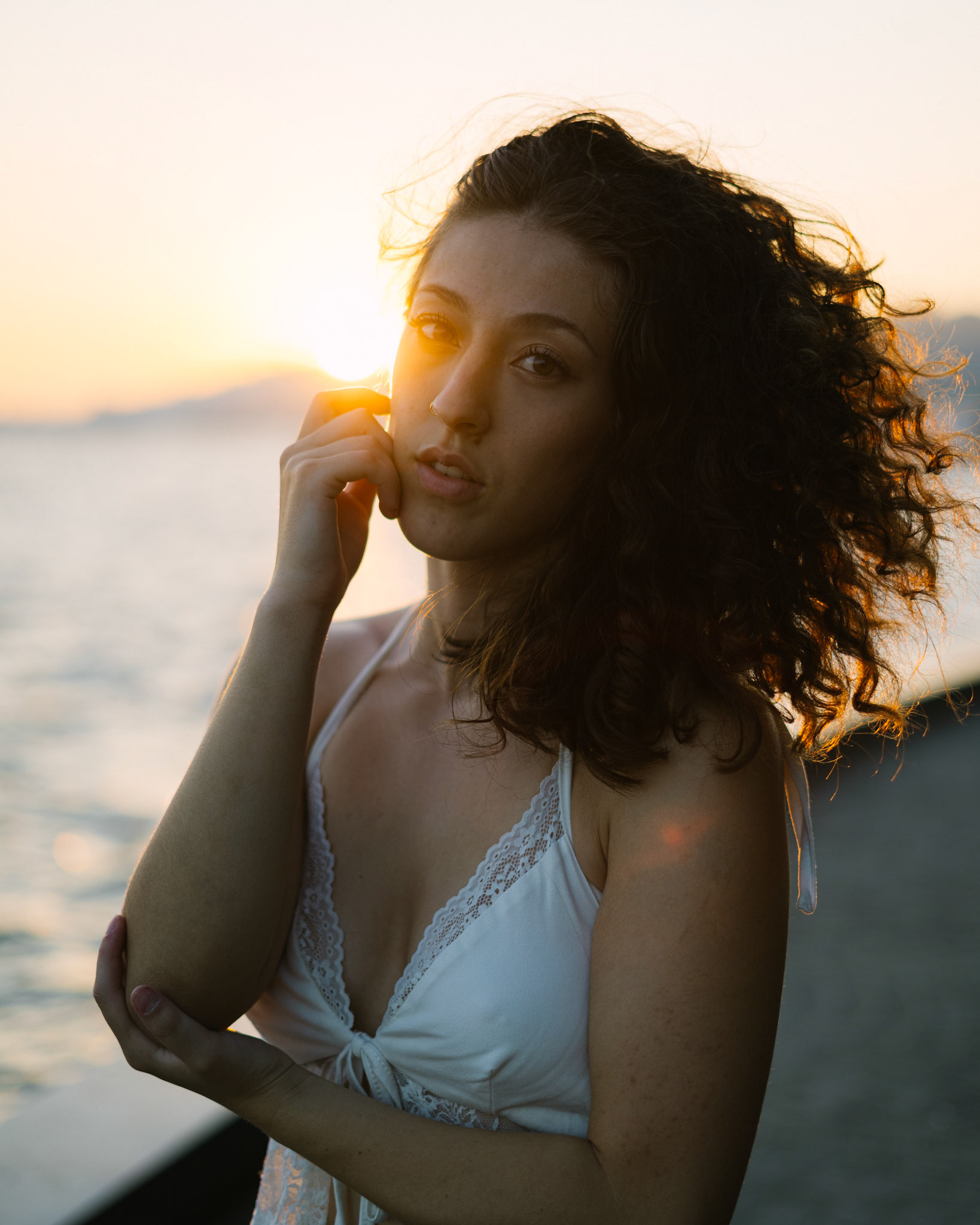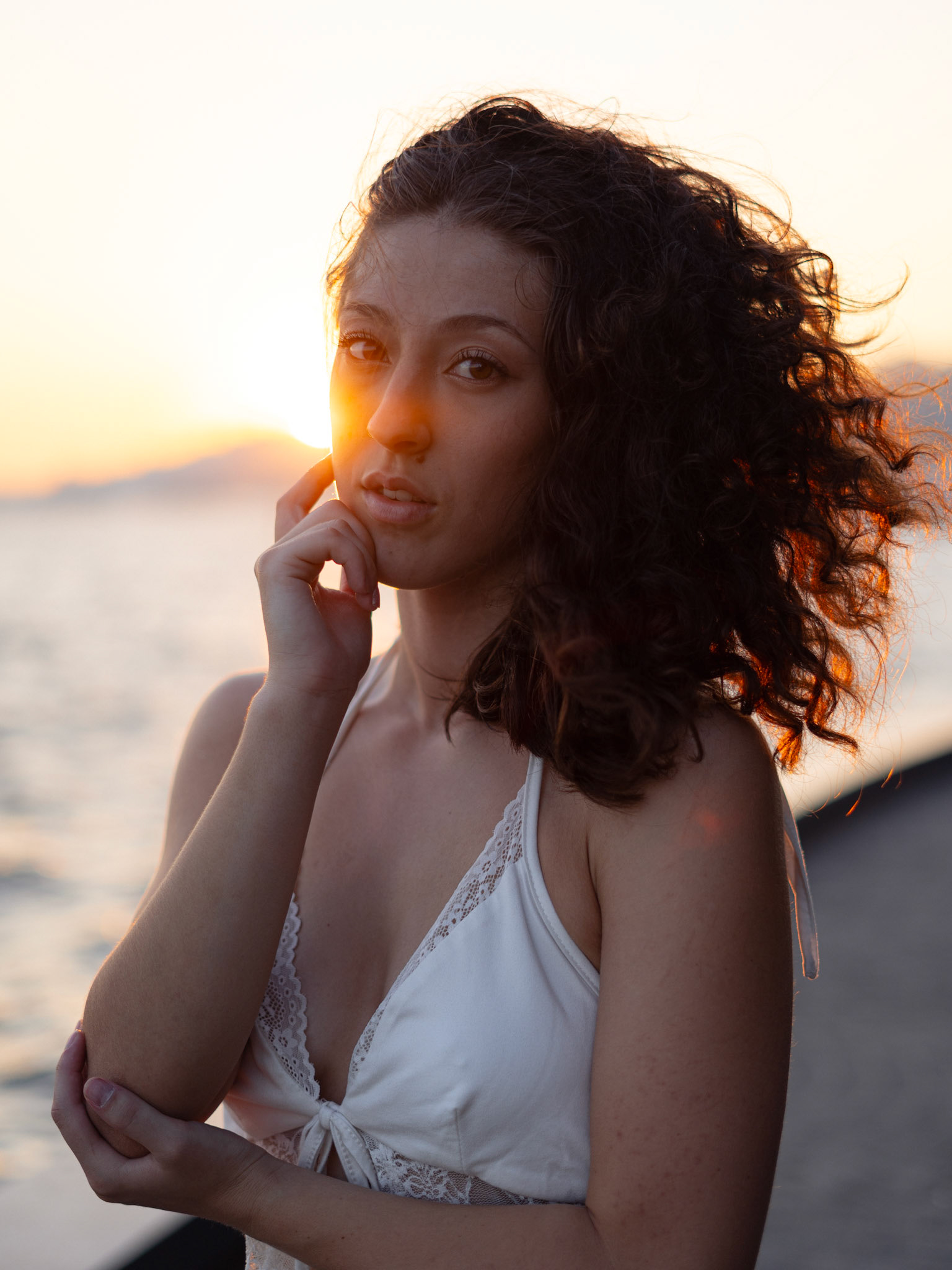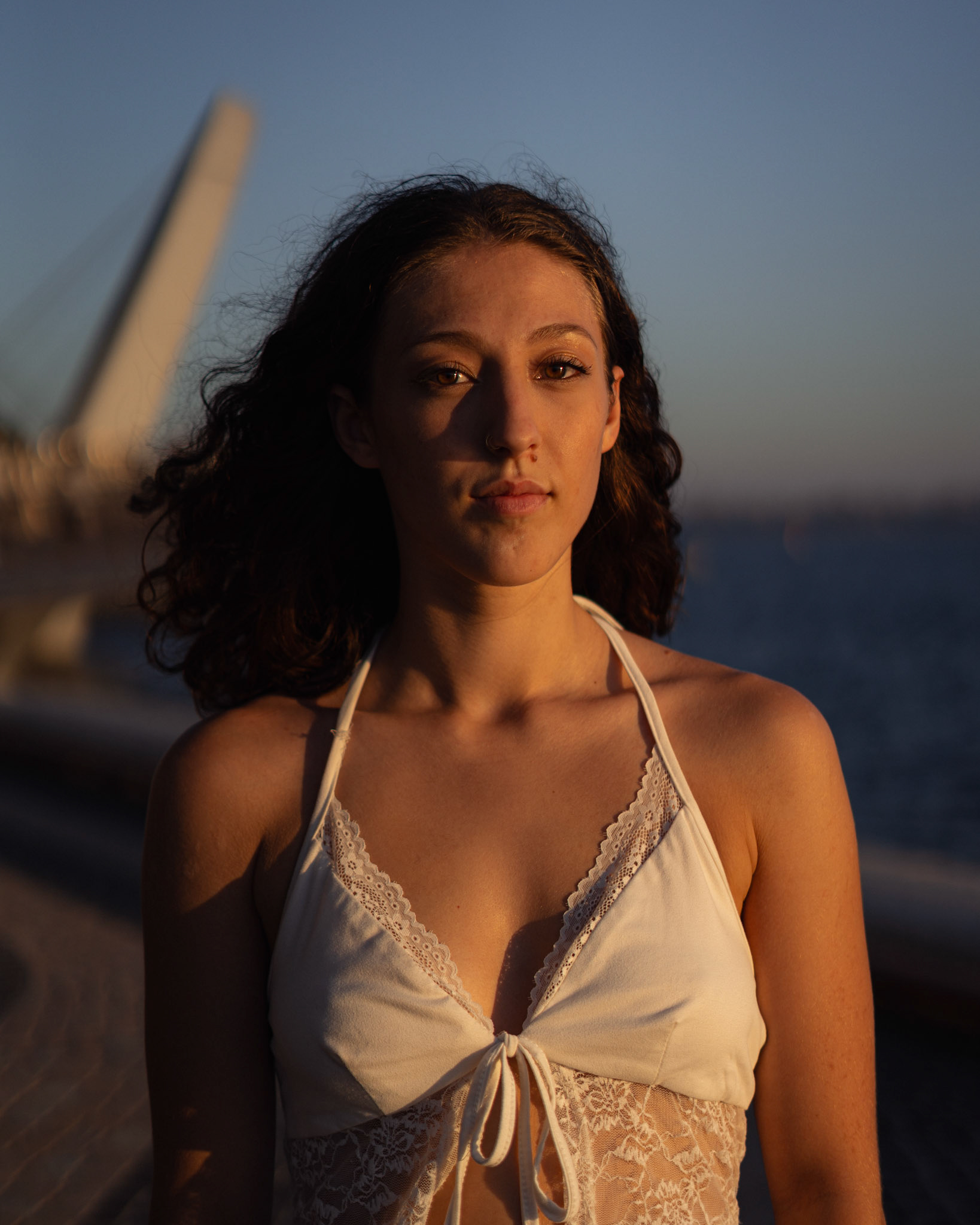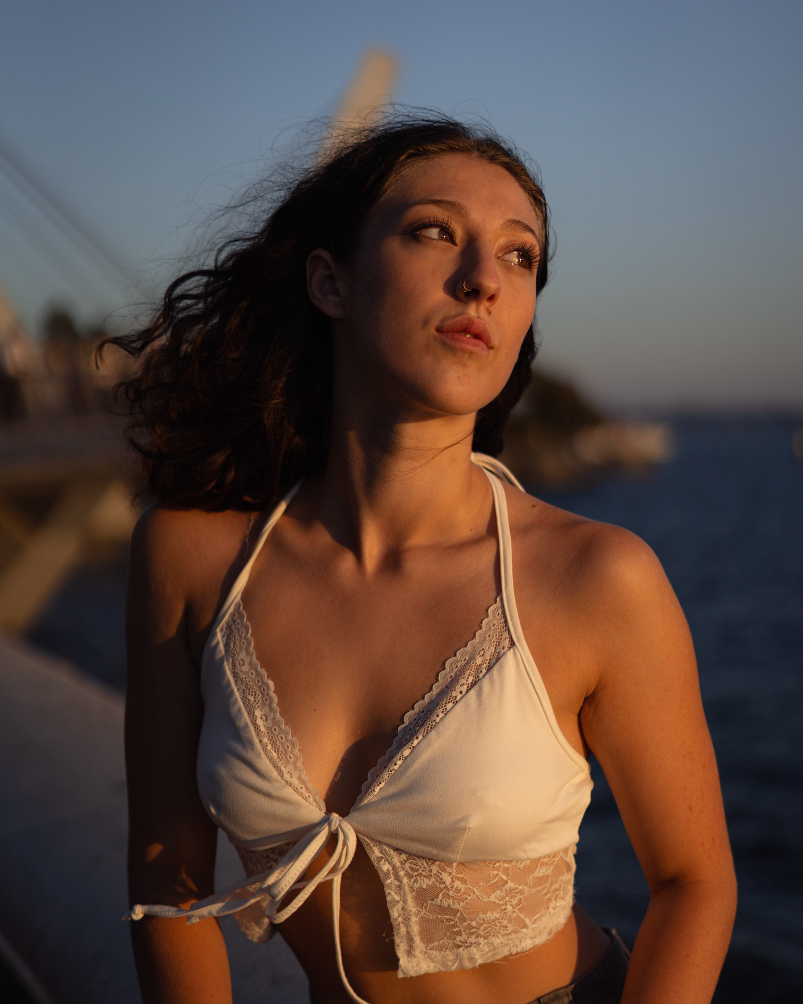 "Navigating the urban labyrinth, amidst the towering skyscrapers, she's drawn to the golden hour's gentle glow like a moth to flame..."